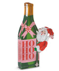 Ho! Ho! Ho! It's time to party! Celebrate Christmas with a bottle of bubbly! This unique, modern Christmas decor features a green bottle with a pink and red label and a smiling Santa popping around the side!