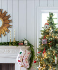Our Candy Canes + Peppermint Swirls Beaded Stocking is a charming addition to your holiday decor. Crafted from chambray fabric, this stocking features intricate beaded applique motifs that add a touch of elegance and sparkle. It is the perfect size to hold all of your small gifts and treats. Hang it by the fireplace or on your mantel to create a festive atmosphere. This stocking is sure to be a favorite for both children and adults alike.