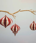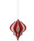 Add a festive pop of charm with this handmade oversized honeycomb ornament crafted from red and cream recycled paper. Its three-dimensional design unfolds into a delightful finial shape, edged with sparkling gold glitter for extra sparkle. Perfect for brightening up any space with a playful, eco-friendly touch!