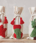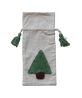 Add a splash of fun to your gift-giving with this cotton wine bag featuring a tufted green Christmas tree design. The woven texture and playful tassel drawstring closure make it easy to carry and charming to look at. Perfect for presenting your favorite bottle with a touch of whimsy!