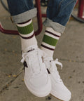 The Retro Stripe remains a staple in any sock drawer. Knit from natural, unbleached cotton in a medium weight and universal fit with a comfortable, cushioned footbed and colorful design.