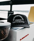 Overworked Under Caffeinated Trucker Hat by Pyknic