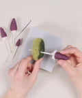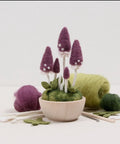 Adorned in ruffles and dainty dots -this family of fungi is the easiest of our mushrooms to make! The Pixie Parasol needle felting kit includes all the supplies to make your own mushroom family: felting needle, foam cushion, roving, cotton stems, felt accents, dowel and a wood turned bowl.