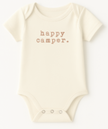 "Happy Camper" is a charming, gender-neutral design celebrating curiosity, joy, and a love for the great outdoors. Whether it’s a baby shower gift, newborn outfit, or a keepsake for nature-loving families, this bodysuit brings smiles and memories to every moment.