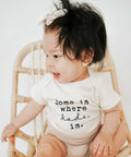 Home starts with Dada’s hugs. Our Home Is Where Dada Is organic cotton baby bodysuit is a cozy way to celebrate the special bond between Dada and baby. Thoughtfully crafted in the USA from luxuriously soft, breathable organic cotton that’s gentle on sensitive skin. Featuring a lap-shoulder neckline and nickel-free snaps for easy diaper changes, it’s perfect for Father’s Day gifting, daddy-and-me photos, and everyday snuggles.