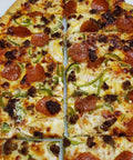 Dr. Pete's mix has Italian herbs inside and makes 2 pizza crusts about 10" each or 1 large pizza crust. All you add is water and olive oil to the mix; let rest 30 minutes; divide in half for two crusts or make 1 large crust. Top with your favorite sauce and toppings and bake about 15-17 minutes! You will have a crisp thin crust pizza made right at home!