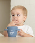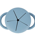 The Happy Snacker is a first-of-its-kind two-piece silicone snack cup with a mess-proof snap-tight lid and soft silicone opening so little hands can easily access food and prevent spills. Designed with easy-grip handles, it fits in car seats and stroller cup holders.