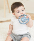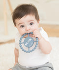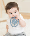 Everyone's favorite teether with lots of personality! The Happy Teether is easy to grip from any angle and gives the right amount of resistance to provide pain relief for early teeth. It is a silicone teether that will soothe sore gums and provide sensory stimulation.