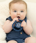 Everyone's favorite teether with lots of personality! The Happy Teether is easy to grip from any angle and gives the right amount of resistance to provide pain relief for early teeth. It is a silicone teether that will soothe sore gums and provide sensory stimulation.