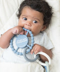 Everyone's favorite teether with lots of personality! The Happy Teether is easy to grip from any angle and gives the right amount of resistance to provide pain relief for early teeth. It is a silicone teether that will soothe sore gums and provide sensory stimulation.