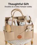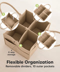 With KeaBabies Original Diaper Caddy Bag, you will never have to worry about losing your baby's countless essentials. Designed seamlessly to meet your daily needs without fussing around looking for what you need. Beautifully constructed with premium felt material, this diaper organizer is lightweight, portable and able to withstand heavy items up to 10lbs. Use it around the house or in the car, without constant packing and unpacking your stuffs. Its modular design allows you to customize compartments with removable velcro divider inserts.