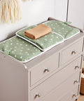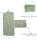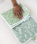 Meet your new parenting sidekick! This sage green changing mat brings style and smarts to diaper duty. The soft quilted surface keeps your little one cozy, while clever foldable pockets stash diapers, wipes, and creams right where you need them—no more frantic bag rummaging. Its geometric pattern adds a modern touch that actually looks good in your stroller or car. Lightweight and compact, it folds down small enough to slip into any bag, making it the perfect travel companion for parents who refuse to sacrifice style for practicality.