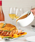 Elevate your table setting with the Blanc Gravy Boat, where timeless elegance meets practical charm. This ceramic beauty features a smooth, glossy white finish that complements any dinnerware collection. The thoughtfully designed spout ensures comfortable, mess-free pouring every time, while the matching saucer catches any drips before they hit your tablecloth. Complete with its own spoon, this three-piece set brings both style and functionality to your dining experience. Perfect for holiday gatherings or everyday meals, it's the gravy boat that actually makes sense.