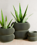 We designed the Double BUBBLES planter to bring a sense of playful elegance to your home, combining modern form with soft, flowing curves. Its unique, ribbed structure and stacked design create a bold yet refined look, making it the perfect statement piece to showcase your plants in style. The drip tray/saucer is custom-fitted and designed to perfectly complement the planter.