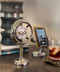 Inspired by spring-centered amplified microphones from the 30's and 40's, the Franklin Speaker features a built-in Bluetooth JBL Mini Speaker which can last up to 8 hours on a single charge. Cast of solid polished brass and aluminum. Simply pair it with your device and enjoy your favorite programming.
