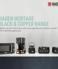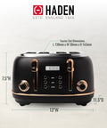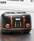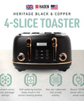 Haden Heritage 4 Slice Wide Slot Stainless Steel Toaster, Black & Copper