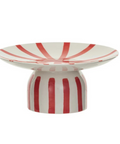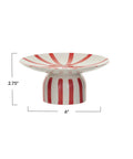 Elevate your treats with this charming hand-painted stoneware pedestal, featuring playful red and cream stripes. Perfect for showcasing desserts or appetizers, it adds a splash of fun and flair to any holiday table. Make your celebrations sweeter and more stylish with this delightful centerpiece!