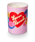 Ignite the romance with Love Bomb, a playful candle that's anything but ordinary. This shiny glass vessel features a bold pop art design that doubles as décor. The intoxicating blend of bergamot, vanilla bean, and sparkling amber creates an irresistible atmosphere—perfect for Valentine's Day or whenever you want to turn up the heat. Crafted with plant-based ingredients, it's a guilt-free indulgence that looks as good as it smells.
