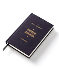 - Features a cloth-bound cover with embossed, gold foil artwork inspired by a vintage library book
