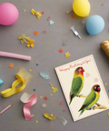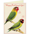 This card features greetings of "Happy Birthday To You!" with an illustration of a cute pair of birds. Blank greeting card and envelope individually cello bagged. Printed on Cavallini's signature Italian Paper. Vintage imagery from the Cavallini & Co. archives.