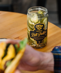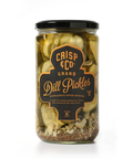 Crisp & Co.'s flagship dill pickle is the Grand Dill; a unique and luxurious dill pickle deriving complexity from ten herbs and spices, a generous portion of California heirloom garlic and fresh Kirby cucumbers.