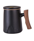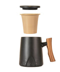 Experience the ultimate tea-drinking experience with our Faux Bois Mug. Crafted with a porcelain infuser and lid, this tea mug features a wood handle for added elegance. Keep your tea warm while steeping and minimize messes with the lid that doubles as a dish for the infuser. Indulge in luxury with every sip.