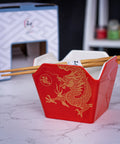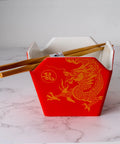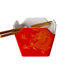 Takeout Box Serving Bowl with Chopsticks - Red & Gold Dragon