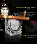 Crafted from high-quality, crystal-clear glass, this tumbler showcases the rich hues of your whiskey while its ergonomic design provides a comfortable grip. The cigar holder, seamlessly built into the side, allows you to enjoy your smoke without interrupting your sipping experience—a perfect companion for relaxed evenings or sophisticated gatherings.