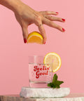 Raise a glass to good vibes! This rocks glass brings a splash of positivity to your favorite spirits with its cheerful "Feelin' Good" design. Perfect for whiskey, bourbon, or whatever makes you smile, it's the ideal companion for celebrating life's little moments. Durable and stylish, it's a conversation starter that turns every pour into a feel-good occasion.