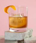 Add a touch of humor to your drinkware with the "This Is As Fancy As I Get" rocks glass. Perfect for your favorite whiskey or cocktail, it keeps things simple yet stylish. Whether you're unwinding after a long day or hosting friends, this glass brings a playful vibe to every sip. Cheers to fancy made easy!