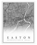Easton PA City Map Print Geography Art, 11x14, Gray