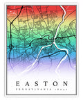 Easton PA City Map Print Geography Art, 11x14 inches, Rainbow