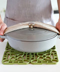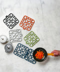 Safeguard surfaces from hot cookware and add style with the CapaBunga® Interlocking Trivet! Its durable, flexible, nonslip design can be used individually for small items or connected for larger cookware. Plus, it has other uses like protecting between pans during storage or as a drying rack.