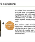 • Periodically apply a few drops of olive oil to prevent the wood from drying out and to maintain the beautiful grain.