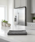 This charming tea towel brings timeless style to your kitchen with its classic waffle weave texture and stonewashed cotton construction. The soft, absorbent fabric makes quick work of drying dishes, while the charcoal hue complements any décor. Perfect for everyday use or as a thoughtful gift, it's the kind of kitchen essential that looks as good as it performs. Toss it over your shoulder and embrace the simple pleasures of a well-appointed kitchen.