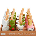 This hand-painted, Rose' Bottle-shaped stoneware caddy holds included pack of wooden toothpicks. Each sold separately, choose from one of the variations, Cheese, Olives, Martini, or Rose'.