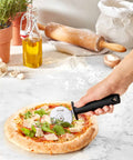 The Triangle Pizza Cutter/Wheel is designed for professional use, yet it is certainly not out of place in your home kitchen. The hardened and durably sharp cutting wheel is made of special stainless steel while a double sided guiding gives maximum stability. Besides cutting pizza the pizza wheel is also useful for cutting home-made pasta dough. The GreenGrip® material used for the handle is a 98% bio-based plastic made from recycled vegetable edible fats and 40% wood fiber.