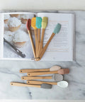 Our Vivo Mini Kitchen Utensil Set is a testament to sustainable design and culinary versatility. The five-piece set is thoughtfully crafted with a bamboo handle and a silicone head, offering a balance of durability and gentle flexibility. The colorful silicone heads paired with the natural bamboo handles not only add a cheerful burst of color to the kitchen but also offer the durability and versatility needed for daily cooking. Whether flipping pancakes or stirring a simmering sauce, this set is bound to become an indispensable part of every kitchen arsenal.