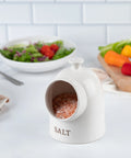 Easy, breezy…and salty. Grabbing a pinch of our favorite staple seasoning has never been quicker. This Salt Pig is crafted with earthy and sturdy speckled ceramic in a warm, matte oatmeal finish. Stable and free-standing, this countertop caddy has a wide opening (goodbye stubbed fingers) and a slight overhang to keep out those unwanted residues. And it's just as charming as it is practical. Sprinkle some rustic personality on that countertop.