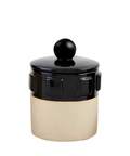 This striking stoneware canister brings artisanal charm to your kitchen or shelf. Crafted from glazed and exposed stoneware, it features a finial lid and a captivating contrast of deep black and warm beige tones. The casual yet elegant design makes it equally at home storing pantry essentials or displaying as a standalone accent piece. Perfect for adding a touch of earthy, handcrafted character to any space.