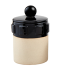 This striking stoneware canister brings artisanal charm to your kitchen or shelf. Crafted from glazed and exposed stoneware, it features a finial lid and a captivating contrast of deep black and warm beige tones. The casual yet elegant design makes it equally at home storing pantry essentials or displaying as a standalone accent piece. Perfect for adding a touch of earthy, handcrafted character to any space.