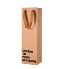 Why settle for bland when you can gift in style? Our "Cheers To Pour Decisions" Wine Gift Bag is the perfect way to present a 750ml bottle of wine with a side of snark. Ideal for those who know that the best tales are fueled by a good bottle of vino, this bag adds a dash of wit to any occasion. Made from sturdy kraft paper, it comfortably holds a 750ml bottle, ensuring that the only thing spilling is the laughter. Whether it's for a friend who enjoys a nightly glass or someone celebrating a milestone, this wine bag is the perfect way to set the tone for a legendary evening.