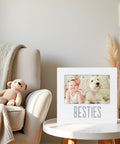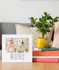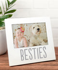 Celebrate your squad with this adorable Besties picture frame! Crafted from sturdy wood, it's the perfect way to display your favorite memories with your closest friends. Choose your style—hang it on the wall with the convenient sawtooth hanger or prop it up on a shelf, desk, or dresser using the built-in easel backing. Whether you're gifting it to your bestie or treating yourself, this frame brings joy and personality to any space.