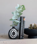 This unique and eclectic vase is the perfect partner to florals. Handmade, with a sleek design featuring a black and white irregular circle pattern. Easily fill with dried pampas grass for a boho home, or fresh blooms for a bright decoration.