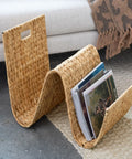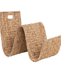 Our Hand-Woven Water Hyacinth Magazine Holder is made from a harmonious blend of natural water hyacinth and sturdy metal, creating a visually captivating design that adds texture and charm to any space. This piece blends rustic charm and modern flair that complements various home decor styles, while also offering a convenient storage solution for keeping every favorite reading material organized and easily accessible.