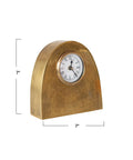 Our Obsidian Mantel Clock is a stunning piece that adds a touch of elegance to any space. Its compact size makes it perfect for displaying on a mantel, desk, or shelf, while its vintage-inspired design brings a classic charm. The clock's antique brass finish gives it a luxurious look, and the metal construction ensures durability and longevity. With its simple yet sophisticated face, this mantel clock is easy to read and tells time accurately.