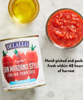 DeLallo San Marzano Style Tomatoes are sun-ripened Italian plum tomatoes harvested in the Naples region of Italy. Grown from San Marzano style seeds and handpicked from the rich volcanic soil of nearby Mt. Vesuvius, these red-ripe Italian tomatoes are vibrant and sweet with a tender, meaty texture perfect for homemade pasta sauces and all of your favorite everyday recipes.