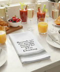 This charming tea towel brings humor to your kitchen with a witty take on weekend brunch culture. Hand-printed in crisp black on soft white cotton twill, it's both functional and funny—perfect for drying dishes or displaying as kitchen décor. The durable twill fabric holds up to regular washing, making it a practical addition that doubles as conversation starter. Whether you're a brunch enthusiast or shopping for someone who is, this playful towel celebrates the best excuse for a leisurely morning.