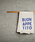 Add some fun to your kitchen with our Buon Appetito tea towel! Made with 100% absorbent cotton in a flour sack style, it's perfect for drying dishes and hands. Say "Buon Appetito" in style (and keep your kitchen clean) with this quirky and playful addition.