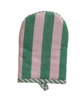 Add a splash of fun to your kitchen with this woven cotton oven mitt featuring pink and green circus stripes. Its durable fabric keeps your hands safe from heat while bringing a playful touch to your cooking routine. Perfect for handling hot dishes with style and ease.